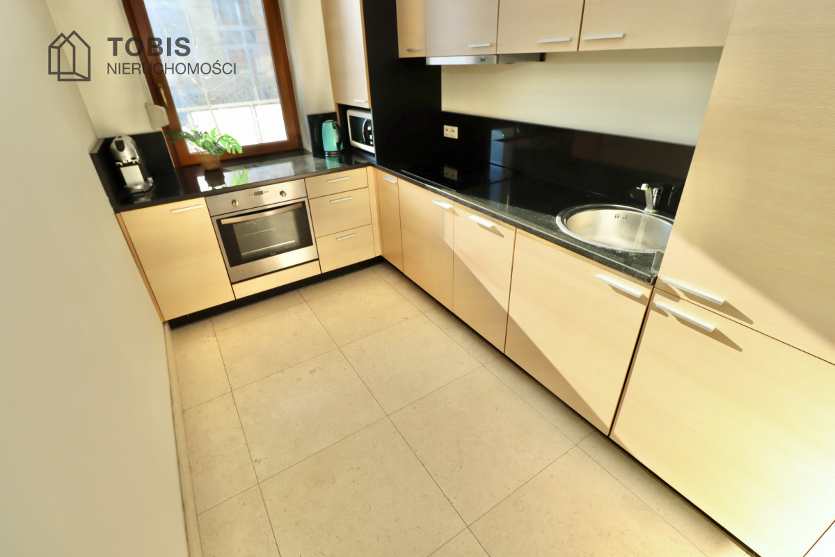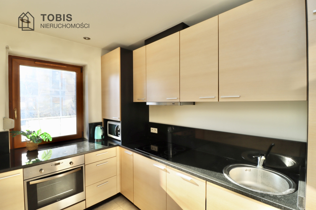 • Pełne wyposażenie: Gotowy aneks kuchenny z pełnym AGD (zmywarka, piekarnik, płyta indukcyjna, lodówka, mikrofalówka).
