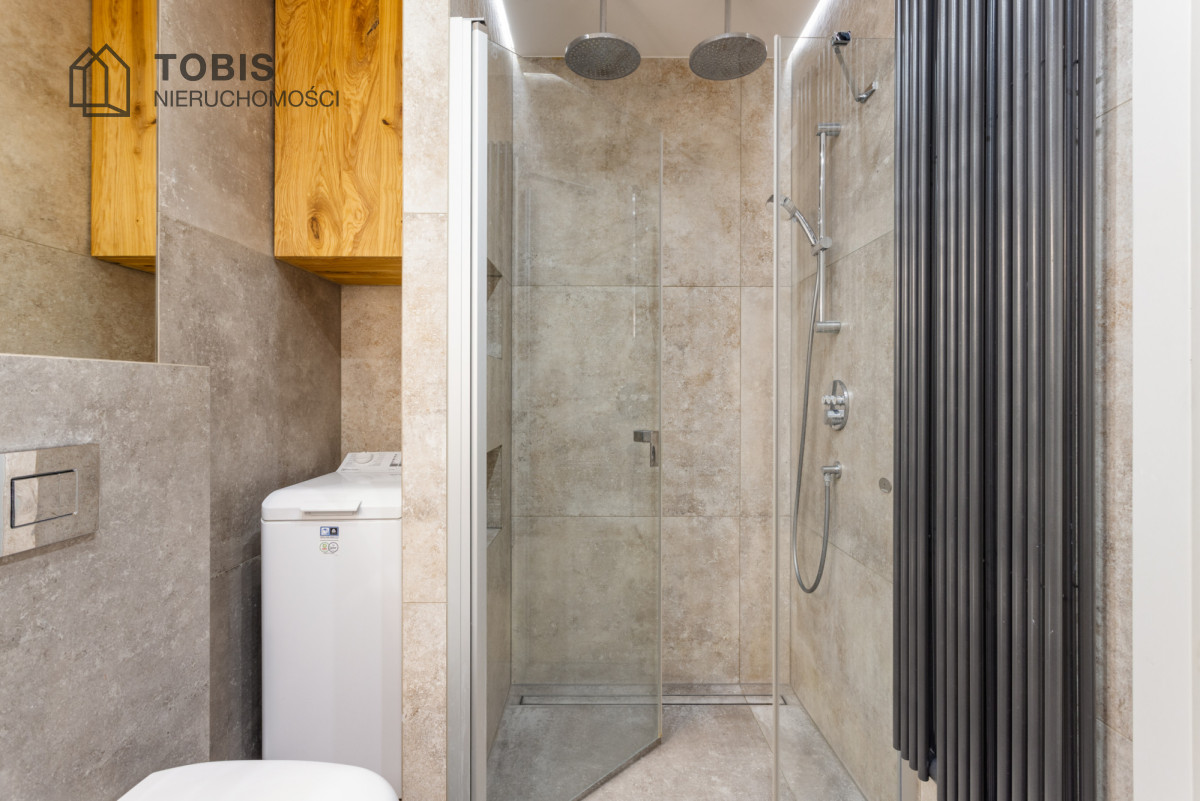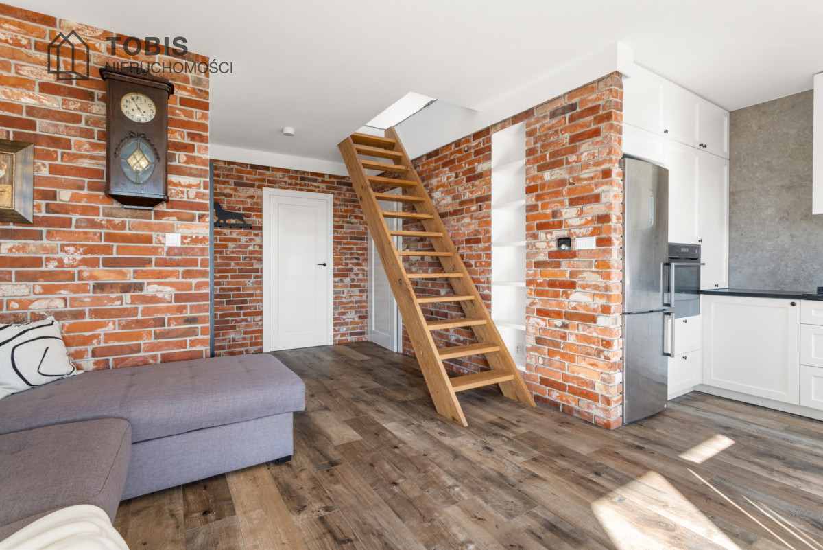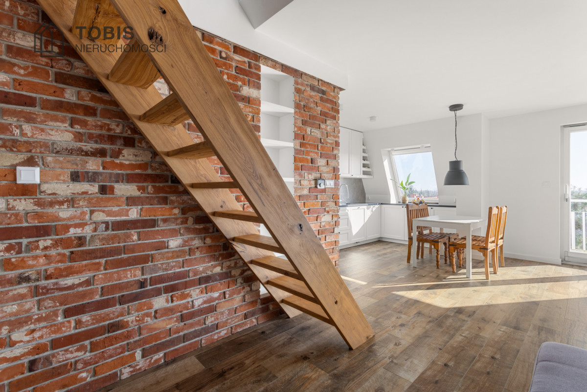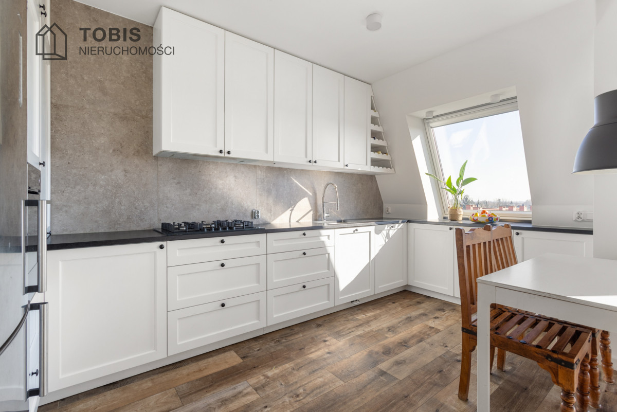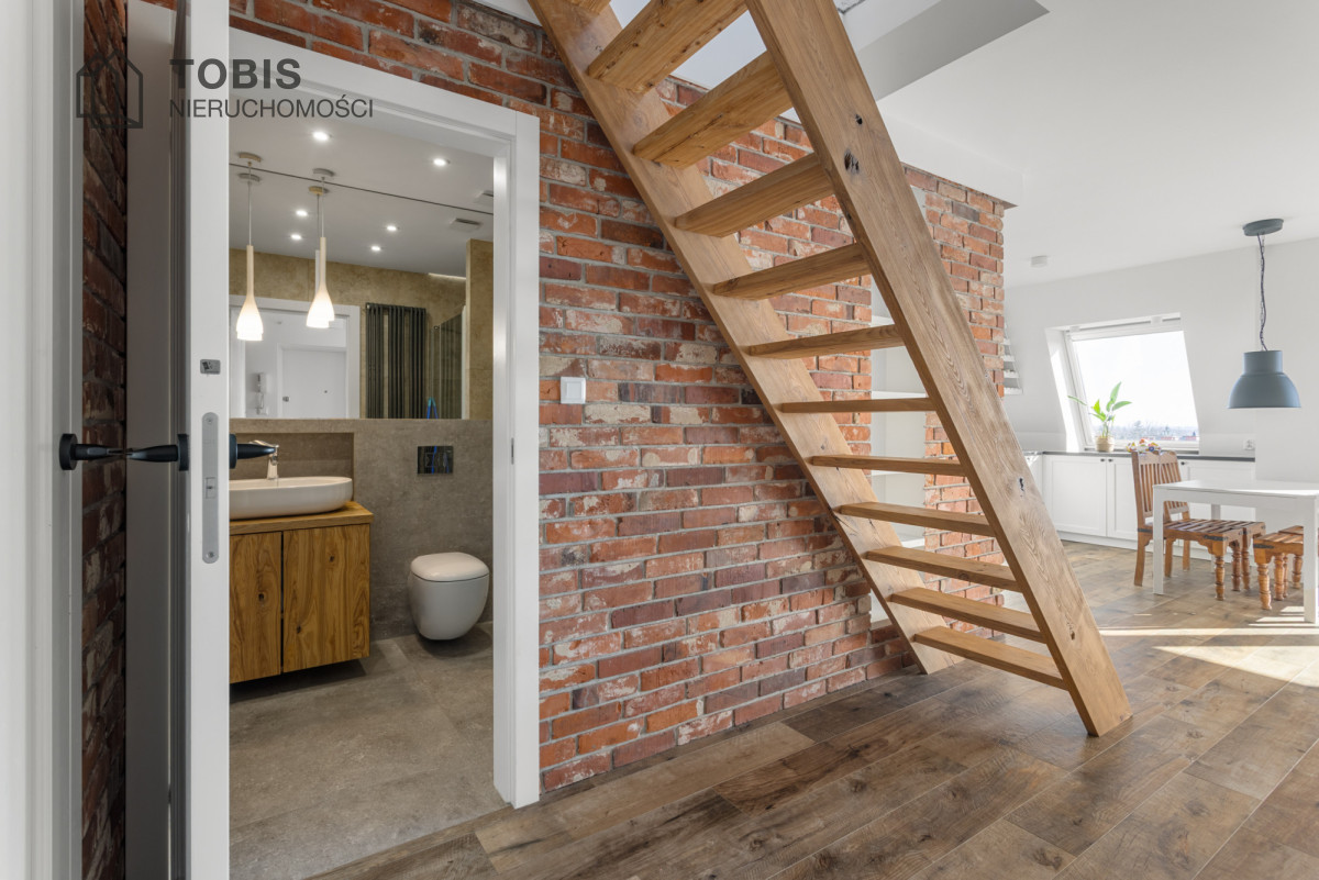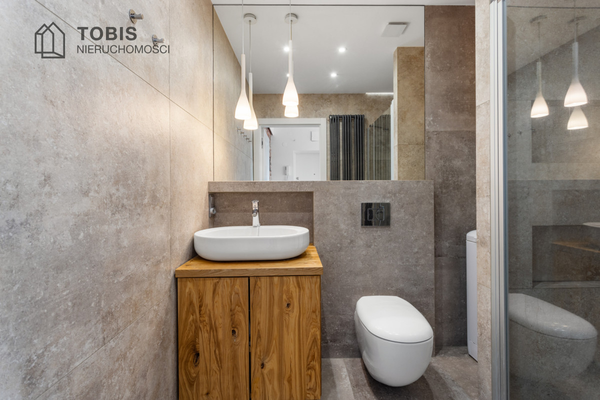 • W 2018 roku mieszkanie przeszło generalny remont. Wymieniona została stolarka okienna wraz z całą instalacją. Zainstalowano nowoczesny, dwufunkcyjny piec gazowy z możliwością zdalnego sterowania z poziomu aplikacji. Do wykończenia wnętrz użyto wysokiej jakości materiałów – drewniane okna, drzwi i schody, armatura marki GROHE, granit, ceramika.