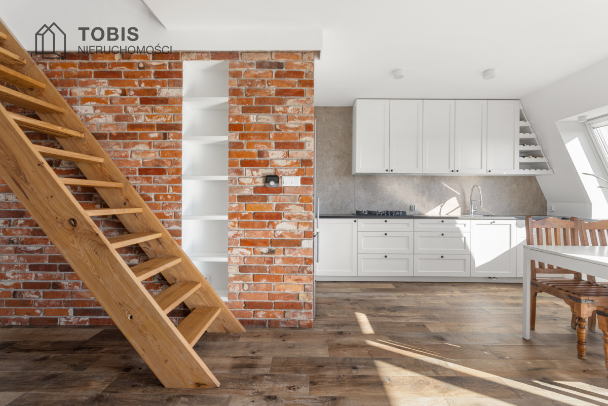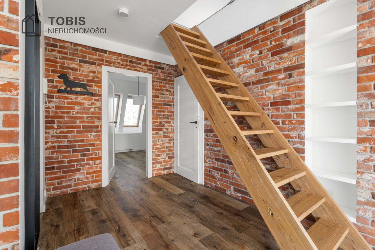 • W 2018 roku mieszkanie przeszło generalny remont. Wymieniona została stolarka okienna wraz z całą instalacją. Zainstalowano nowoczesny, dwufunkcyjny piec gazowy z możliwością zdalnego sterowania z poziomu aplikacji. Do wykończenia wnętrz użyto wysokiej jakości materiałów – drewniane okna, drzwi i schody, armatura marki GROHE, granit, ceramika.