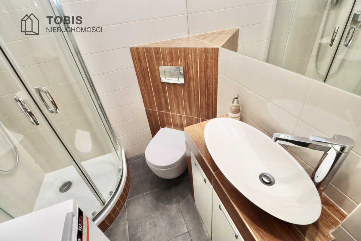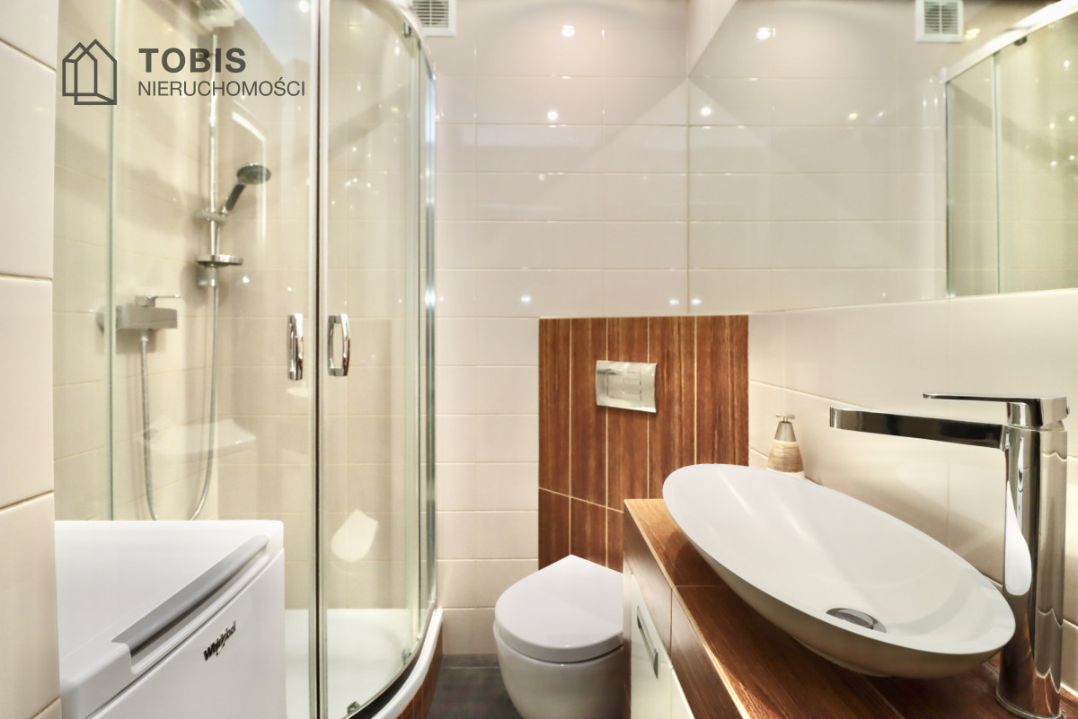 • Łazienka: Nowoczesna i czysta, z wygodną kabinę prysznicową.