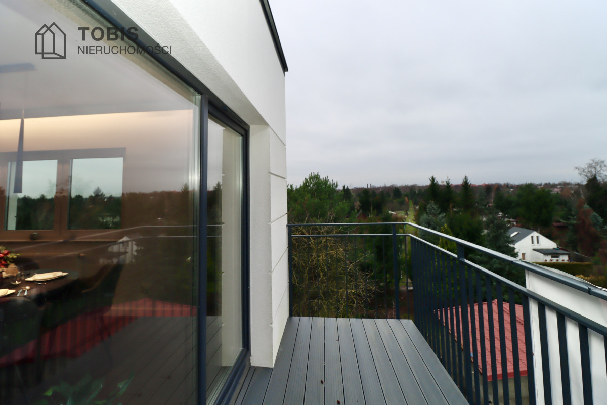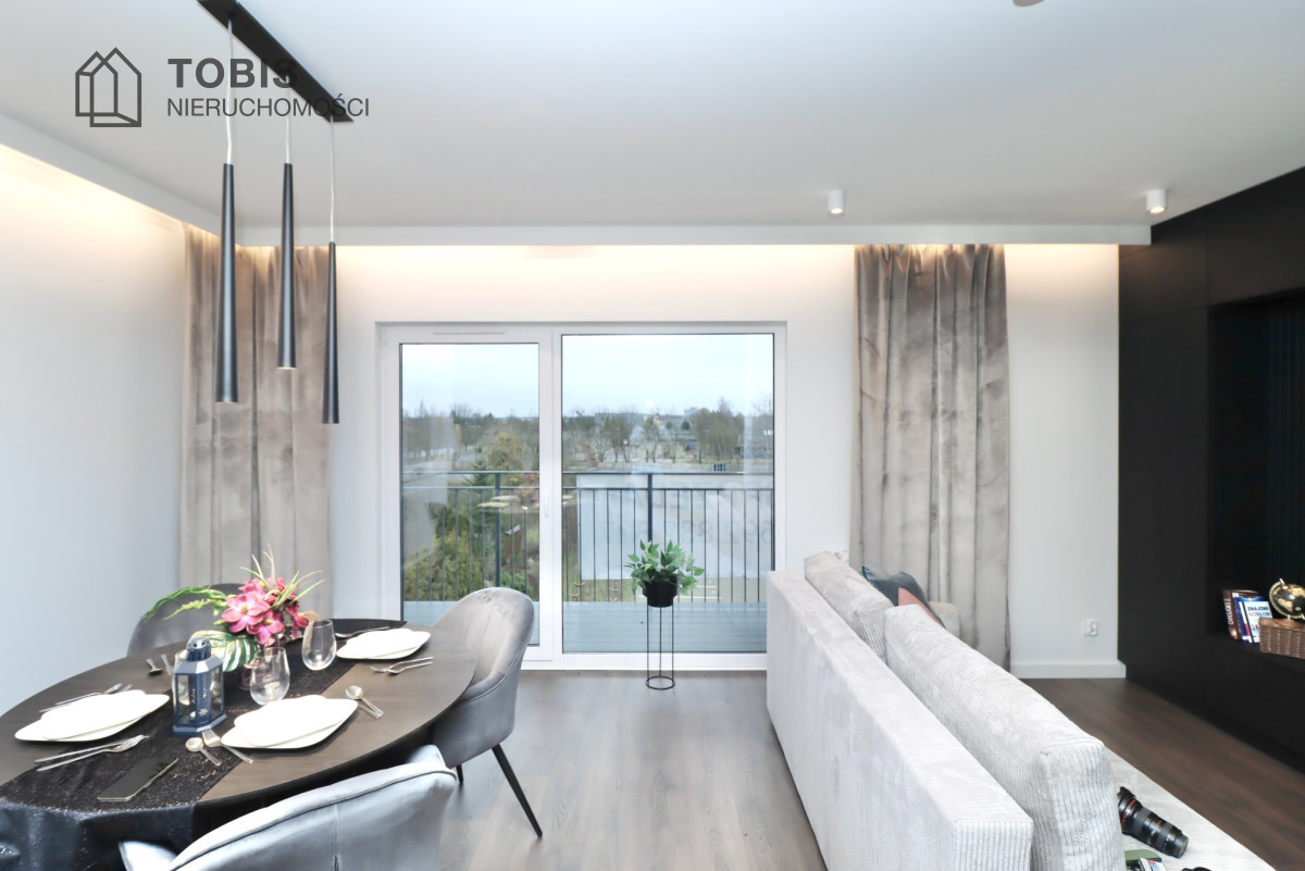 • Taras z Widokiem na Zieleń: Duże przeszklenia prowadzą na balkon, z którego rozpościera się kojący widok na niską zabudowę i tereny zielone. To idealne miejsce na poranną kawę w ciszy i spokoju.