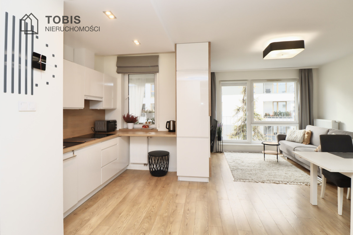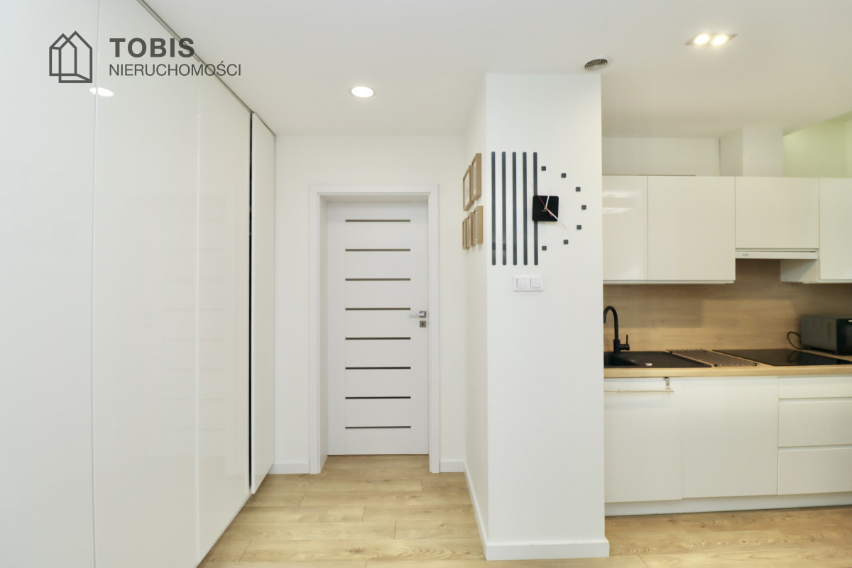 Zapraszamy do zakupu wyjątkowego, nowoczesnego mieszkania na prestiżowym osiedlu, idealnego dla osób ceniących sobie wysoki standard wykończenia i bliskość natury. Ta nieruchomość to doskonała propozycja dla singla lub pary, która szuka gotowego do zamieszkania, designerskiego wnętrza.