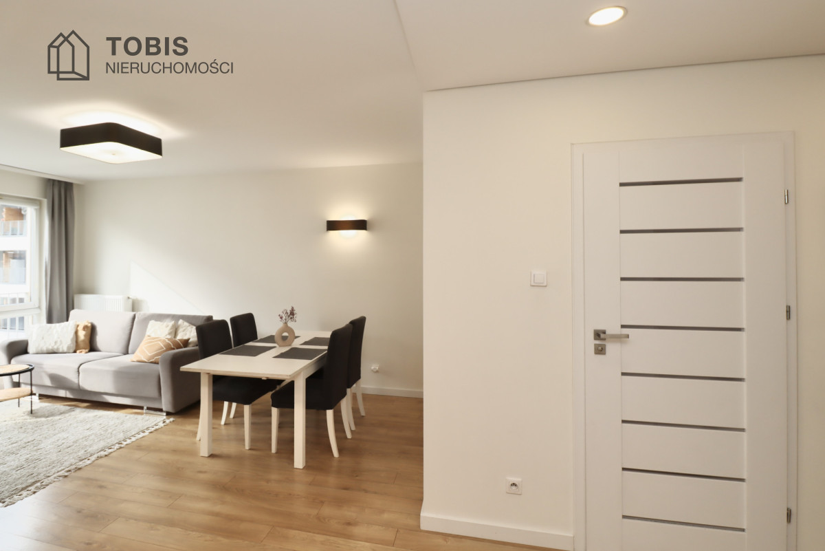 Zapraszamy do zakupu wyjątkowego, nowoczesnego mieszkania na prestiżowym osiedlu, idealnego dla osób ceniących sobie wysoki standard wykończenia i bliskość natury. Ta nieruchomość to doskonała propozycja dla singla lub pary, która szuka gotowego do zamieszkania, designerskiego wnętrza.