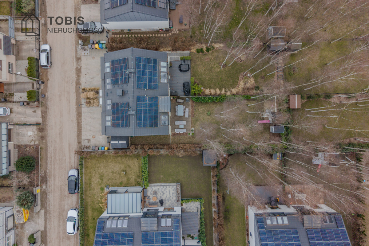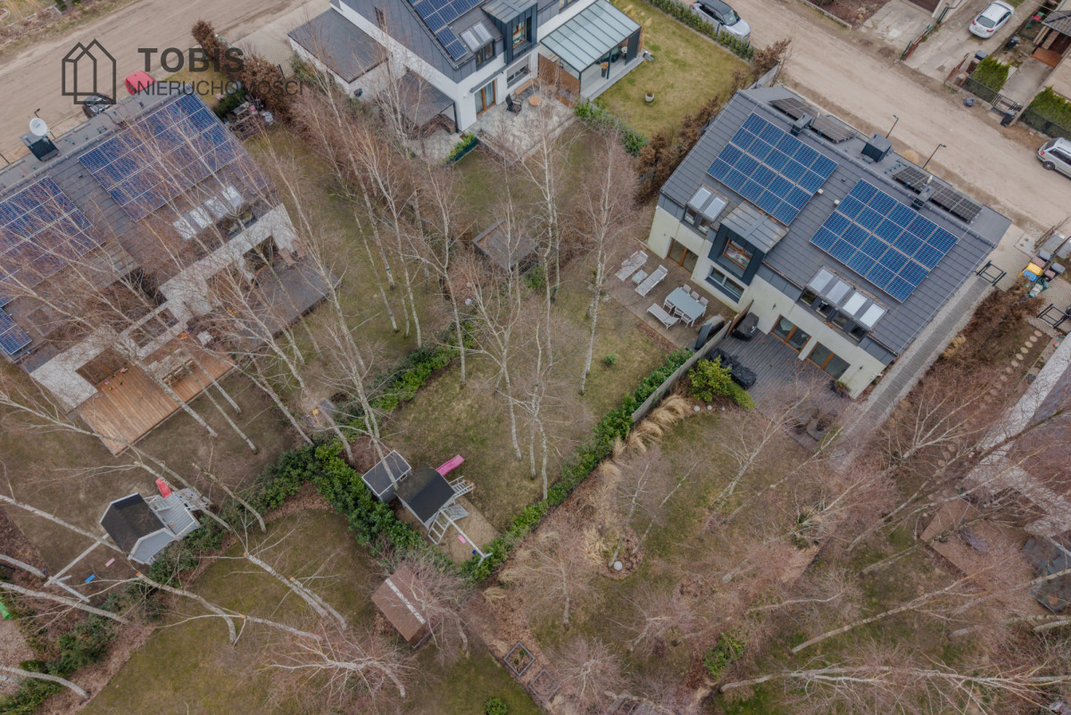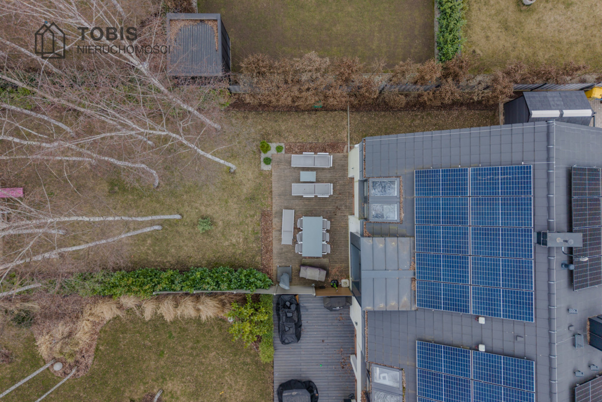Dom wyposażony w pompę ciepła oraz instalację fotowoltaiczną o mocy 7,2 kW – rozliczaną na starych, korzystnych zasadach – zapewnia bardzo niskie koszty utrzymania i komfort użytkowania przez cały rok.