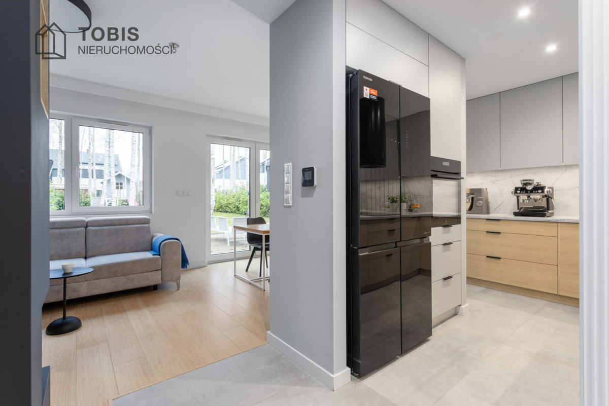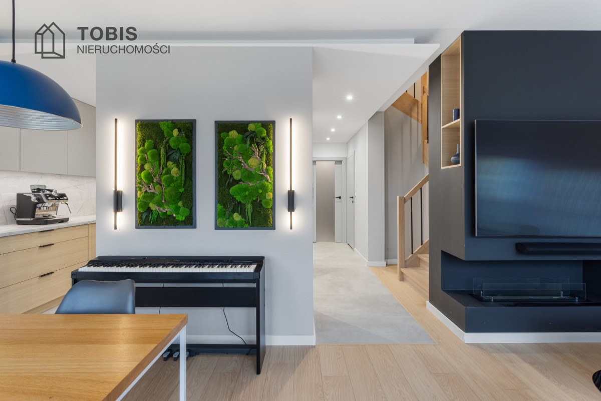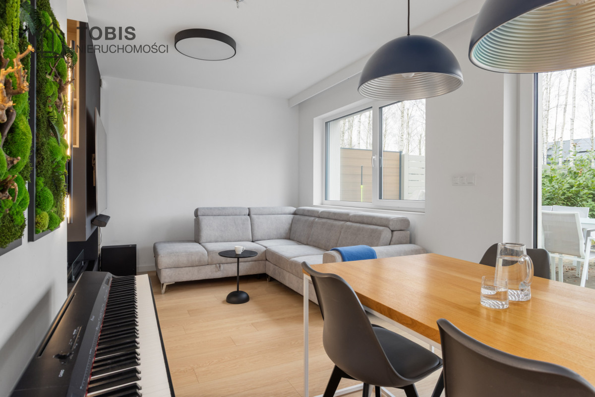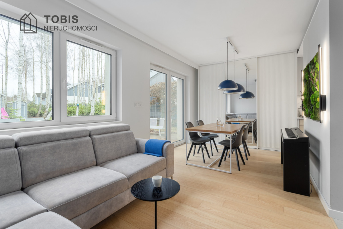 Dom wyposażony w pompę ciepła oraz instalację fotowoltaiczną o mocy 7,2 kW – rozliczaną na starych, korzystnych zasadach – zapewnia bardzo niskie koszty utrzymania i komfort użytkowania przez cały rok.
