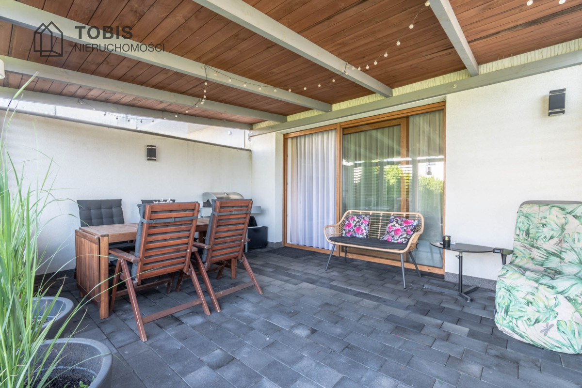– piękne zadaszenie tarasu , chroniące przed słońcem i deszczem